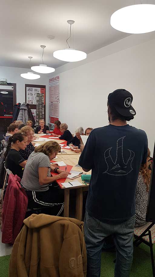 Cerca de cuarenta personas de distintos barrios y ámbitos acudieron con el único afán de aprender, de ayudarse y ayudar a los demás. Escucharon y siguieron con atención expectante todas y cada una de las indicaciones, informaciones y consejos que Niko Fire, nuestro ponente y formador, puso a su disposición.