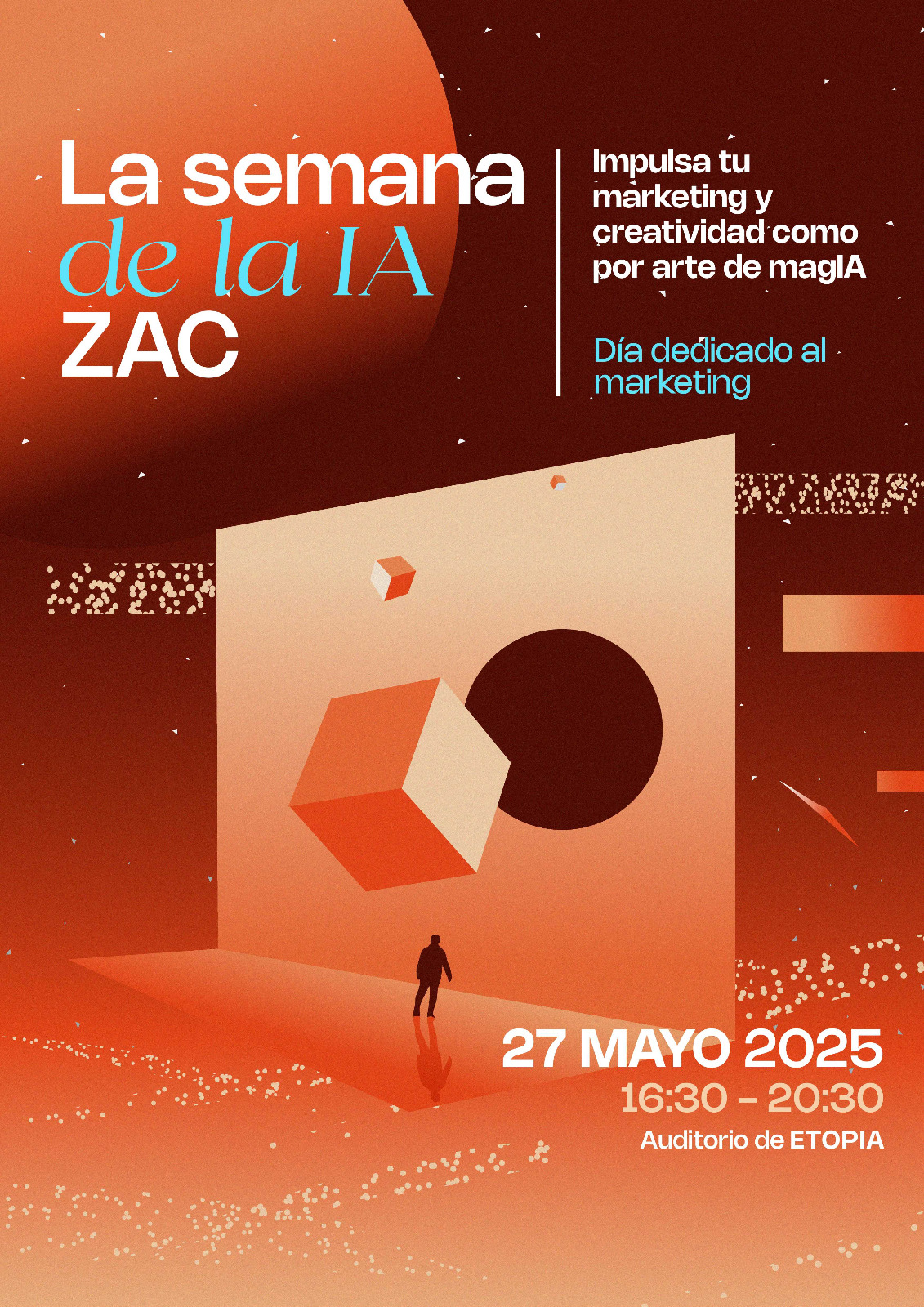 Cada jornada de IA ZAC se centrará en un sector clave donde la IA ya está marcando la diferencia. El evento no es sólo formativo, sino vivencial. Las tardes comenzarán a las 16:30 horas con un café networking y se extenderán hasta las 20:30 con ponencias, presentaciones prácticas y un afterwork final donde seguir compartiendo ideas.