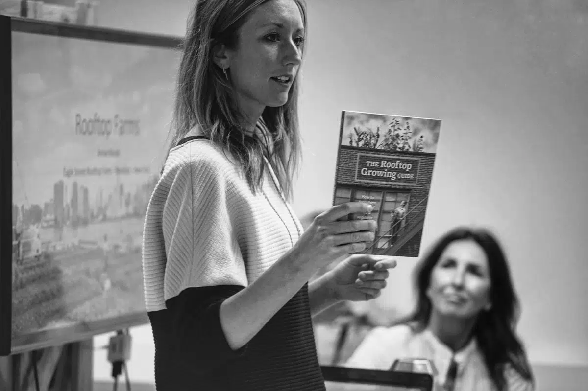 Annie nos explicaba cómo esto, además de ser un buen negocio, es un recurso muy potente de cambio medioambiental. ¡Construyendo huertos en los tejados podemos ayudar a bajar la temperatura de ciudades como Nueva York!