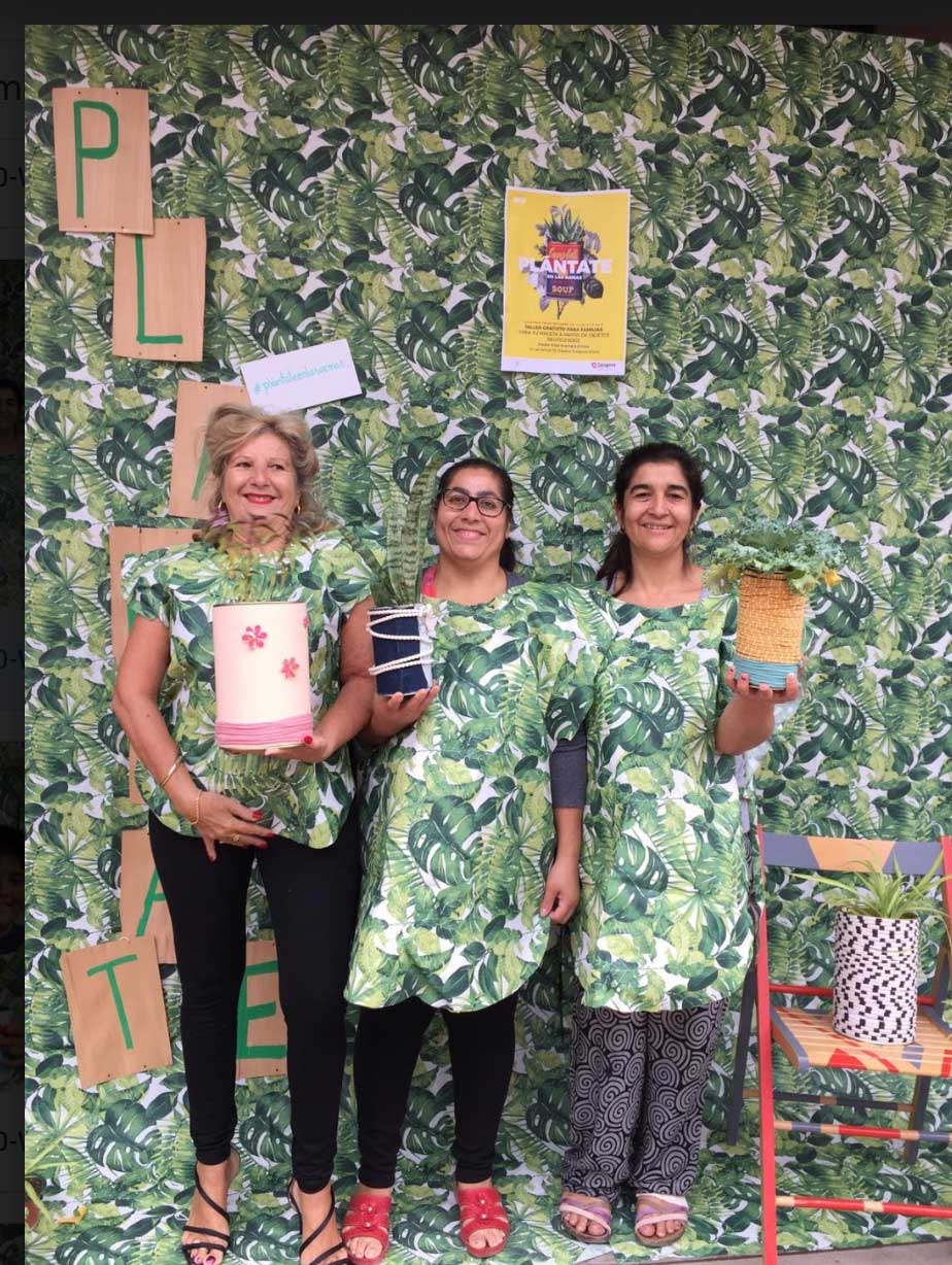 Para terminar, un gran decorado con estampado vegetal invitaba a fotografiarse y fundirse con la naturaleza, gracias a unos petos que crearon las mujeres de Hilvana, una la asociación de costura creativa del colectivo del colegio Joaquín Costa las que me diseñaron y confeccionaron los petos y con sus ideas fomentaron que todo saliera mucho más alegre. Allí tuvimos a algunas de la integrantes de “Hilvana Costura Creativa” posando con sus diseños hechos en tiempo record!!!